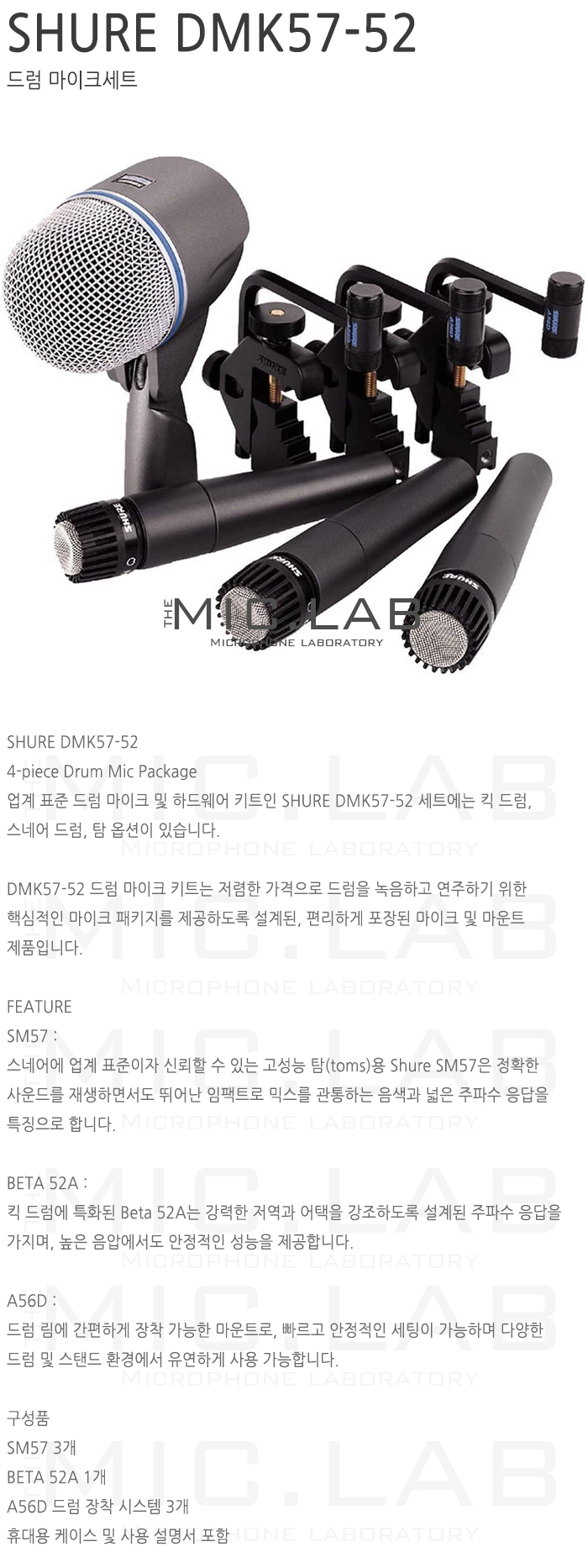 DMK57-52는 SM57 3개와 Beta52A로 구성되어 있으며,