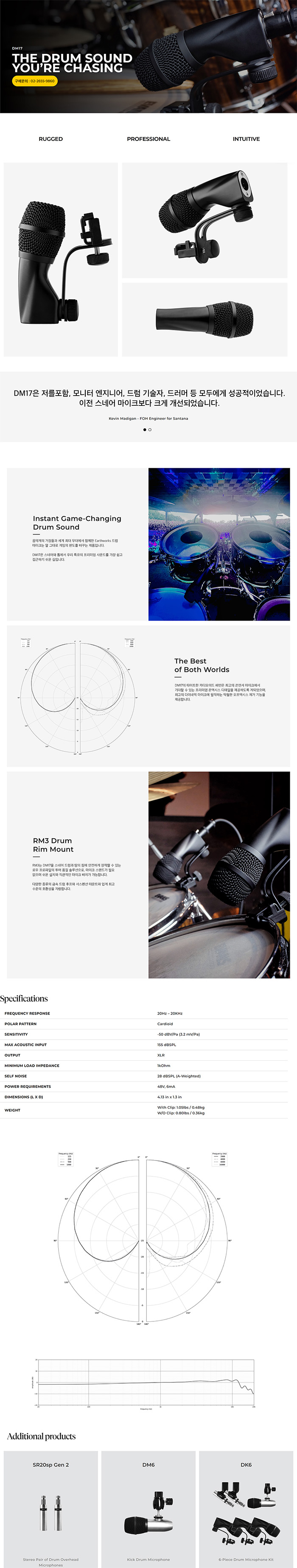 > EARTHWORKS DM17 드럼탐/스네어용마이크 전용마운트 RM3포함