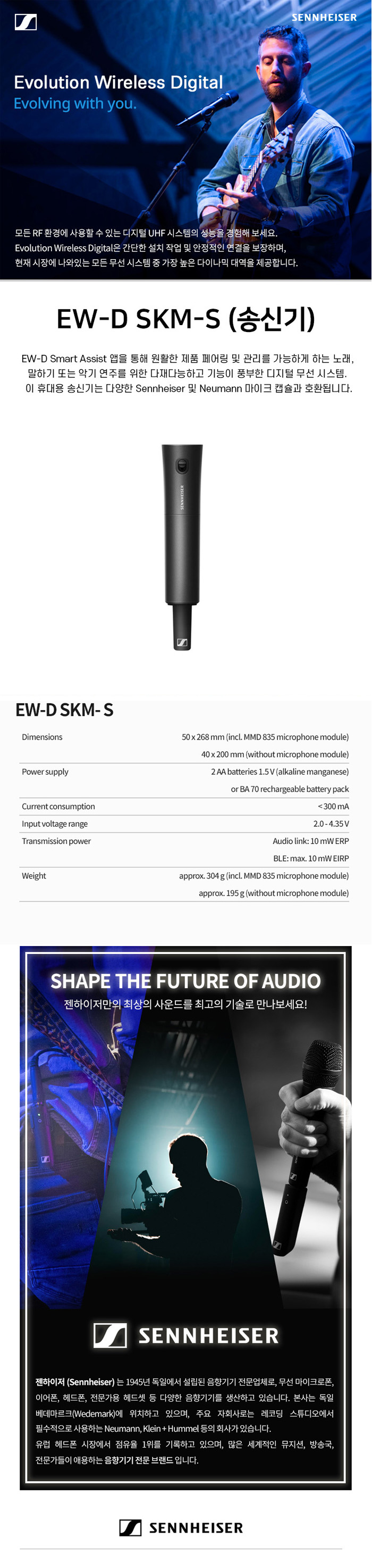 > SENNHEISER EW-DP EK / EWD SKM-S / MMD945[휴대용/무선 핸드마이크세트] SET